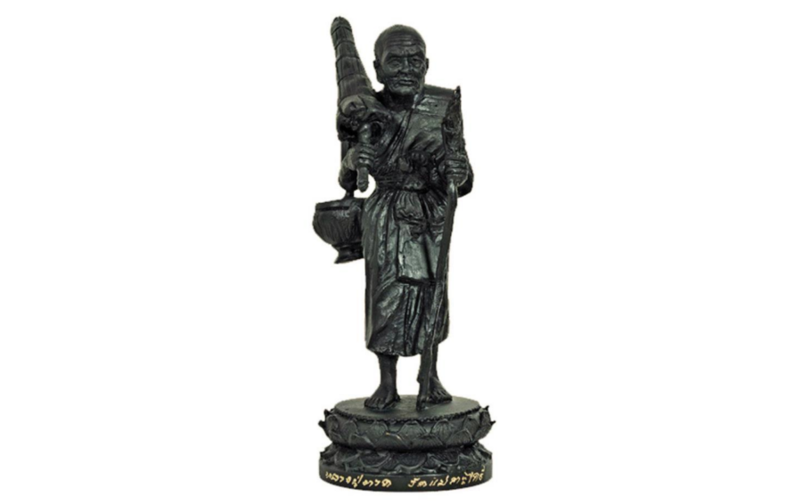 Luang Por Tuad is depicted carrying his signature Glod, an almsbowl, and using a Naga head walking staff, symbolizing his spiritual journey and devotion. This masterpiece is not only a collector’s dream but also a deeply spiritual artifact that embodies the essence of Luang Por Tuad’s teachings and legacy.